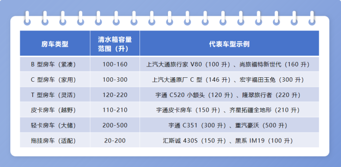 一、先搞懂:不同房车的清水箱容量差异